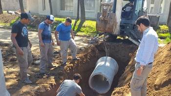 Se está avanzando actualmente con el cruce de caños en la ciudad de Alberti para vincular el desagüe pluvial "Cuenca Sur", a la altura de la calle Ing. E. Klein, con los nuevos sumideros de la calle Güemes, para el desagüe del agua proveniente de los barrios La Candela y Alberti Chico.
