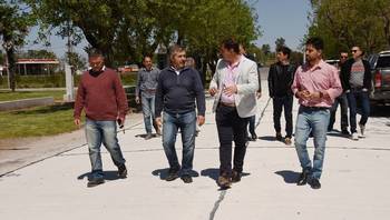 Junto a una comitiva que incluyó a los secretarios de Producción, Ing. Juan Cruz Martinez; de Obras y Servicios Públicos, Arq. Roberto Cosentino; y de Gobierno, Ramón Parera; el intendente Serenal supervisó el estado de la calle principal de este importante predio que fue repavimentada a lo largo de casi 300 metros lineales.