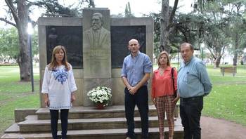 Las ofrendas fueron colocadas por el intendente municipal Germán Lago, quien encabezó el acto, junto a la presidente del Concejo Deliberante Silvina Vaccarezza, y a los concejales Ángel Capurro y Blanca Rodríguez; y por los descendientes de menor edad de la familia Vaccarezza.