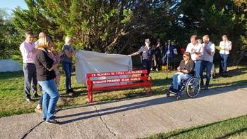 Rivadavia ya tiene su primer "Banco rojo" en homenaje a las mujeres víctimas de la violencia de género.