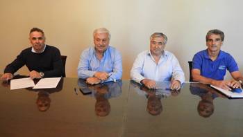 El Intendente de General Villegas, Eduardo Campana, junto al Secretario de Obras y Servicios Públicos, Daniel Cepa, firmaron la transferencia de la obra de infraestructura Colector de Desagües Cloacales desde Barrio El Progreso por avenida Chassaing Este hasta la Planta depuradora de líquidos cloacales y red de desagües cloacales y red de agua del Barrio El Ciclón con los representantes de Aguas Bonaerenses S. A. (ABSA) Edgardo Carpanetto, Gerente Regional y Walter Lamanno Jefe de Sucursal General Villegas.