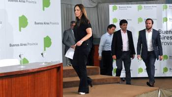 La gobernadora bonaerense, María Eugenia Vidal, sumó un bono salarial extraordinario para empleados públicos sería de $ 5 mil- al paquete de medidas de "contención" tras la corrida cambiaria de esta semana, que podría incluir también una suba de la jubilación mínima, una atenuación del impacto de la devaluación para los deudores UVA, además de beneficios para las Pyme y la intervención del Banco Provincia para sostener el consumo.