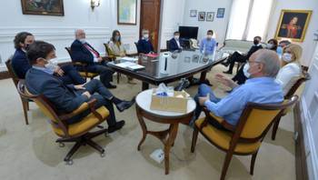 Kicillof encabezó esta tarde en la Casa de Gobierno de La Plata una reunión de los Comités Operativos de Emergencia (COE) de la Nación y la Provincia, de la que participaron vía teleconferencia los 135 intendentes de la provincia.