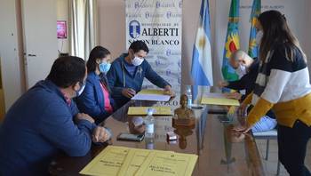 En la municipalidad de Alberti se realizó la firma de los boletos de compra-venta de los lotes del Banco de Tierras, con los vecinos y vecinas que fueron adjudicados en el sorteo realizado el pasado lunes.