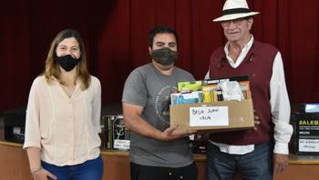 Participaron del acto de entrega el intendente municipal Calixto Tellechea, el concejal Nahuel Mittelbach y miembros del Ejecutivo Municipal ameghinense.