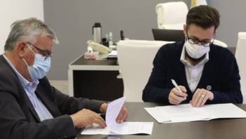 La firma la llevó a cabo el jefe comunal con el Presidente del Instituto de la Vivienda de la Pcia de Bs As Agustín Simone.