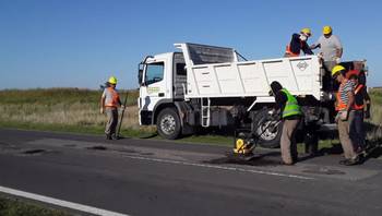 El equipo de Obras Públicas se encuentra realizando trabajos de bacheo en la ruta Nacional Nº 33, en el tramo comprendido entre América y Cuero de Zorro, en el límite con Trenque Lauquen.