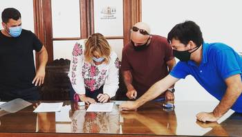 La Intendente de General Arenales, Erica Revilla, recibió a autoridades de la empresa Calverasi S.A. quienes serán los responsables de la realización de la red de agua potable para el Barrio Estación Ascensión. El encuentro tuvo lugar en el Palacio Municipal, donde se realizó la firma del contrato para el comienzo de la obra que se ejecutara 100% con fondos municipales.