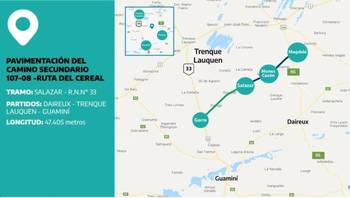 La Ruta del Cereal unirá la Ruta nº86 con la Ruta nº33. El trayecto de Mones Cazón (Pehuajó) hasta Salazar (Daireaux) ya fue finalizado pero faltan realizar los 47 kilómetros que restan hasta Garre (Guaminí) para conectar con la Ruta 33. La obra beneficiaría a una zona agrícola y ganadera comprendida por unas 650 mil hectáreas.