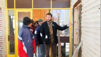 El Intendente de Leandro N. Alem, Carlos Ferraris, visitó la obra de remodelación que se está llevando a cabo en la terminal de ómnibus de Juan B. Alberdi, acompañado por el Delegado Municipal, Darío Zapata.