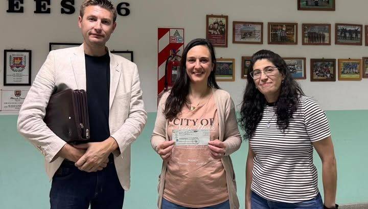 También Ferraris pasó por la Escuela Secundaria N° 6 de El Dorado “René Favaloro” para entregar un subsidio, con el que se comprarán aires acondicionados en los salones. Allí lo esperaban Yanela Suárez, directora de la institución, y la secretaria de la misma, Lucila Fossaluzza.