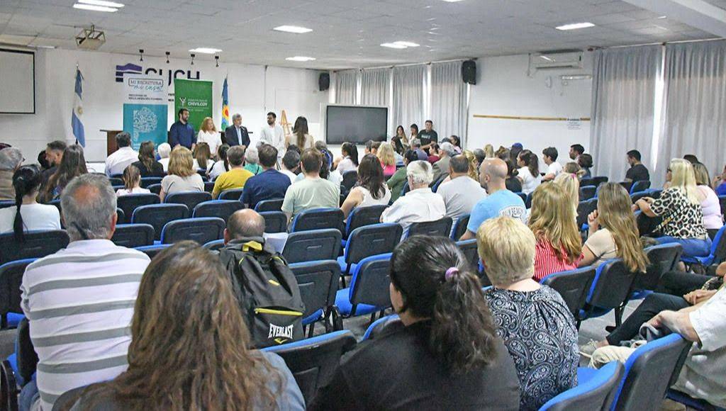 El intendente Guillermo Britos, junto a autoridades provinciales, encabezó este jueves el acto en que 79 familias de Chivilcoy procedieron a la firma de los títulos de propiedad de sus viviendas. La actividad tuvo lugar en el salón de actos del CUCH.