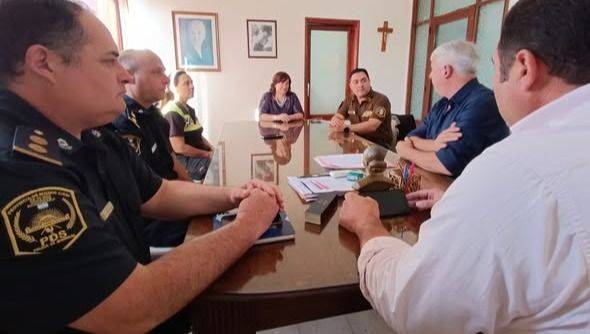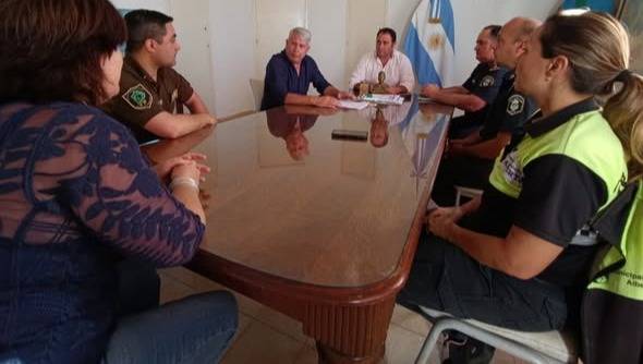 Esta fue la primera reunión del Intendente con el Jefe de Policía Comunal Comisario Diego Martínez y el Jefe de Estación subcomisario Ezequiel Ruiz de la Policía Comunal, el Comisario Sebastián Rodríguez del Comando de Prevención Rural, Ana Brunetti de la Dirección de Tránsito y la Jueza de Faltas Jorgelina Irurtia, con el objetivo de unificar criterios para la resolución de esta situación.
