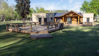 Cabe destacar que el inmueble construido para funcionar como proveeduría corresponde a un estilo cabaña, en armonía con el medio en el que se encuentra emplazado y cuenta con un área cubierta de casi 100 m2 equipada con sanitarios externos e internos, cocina, salón, galería y deck, más un espacio de depósito y sector parquizado e iluminado con vistas al lago.