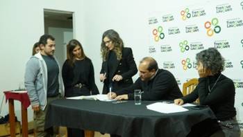 Posteriormente se procedió a la firma protocolar de tres escrituras correspondientes a las familias de Julio César Lambert; Alfio Miguel Zurra-María Alejandra Godín y de Mayra Soledad García-Cristian Ariel Camarero, para luego seguir con el resto de los beneficiarios/as.