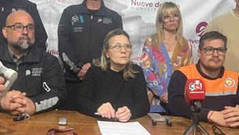 La Intendente Municipal de Nueve de Julio, Maria Jose Gentile, brindó una conferencia de prensa junto al director provincial de Defensa Civil, Fabián García, y funcionarios provinciales y municipales, para actualizar sobre la grave emergencia hídrica que atraviesa el distrito.