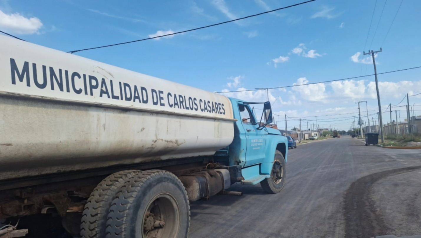 Las altas temperaturas con las que terminó el 2025 generaron en el último día del año que el municipio de Carlos Casares junto al cuartel de bomberos voluntarios realizaran un esquema y dispositivo de distribución de agua con camiones en distintos puntos de la ciudad debido a la escasez y la baja presión en la red.