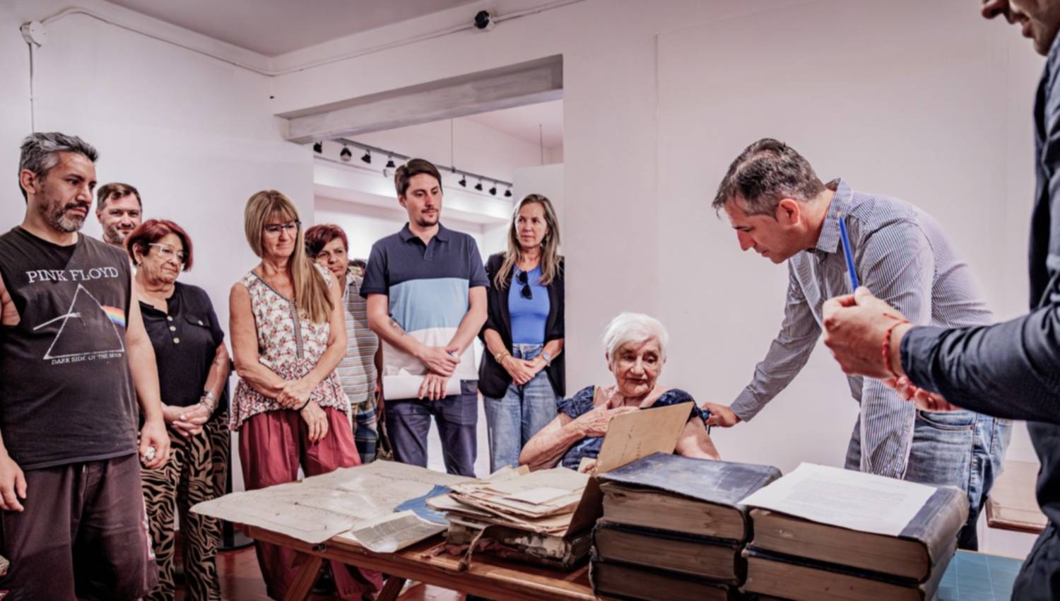 Durante su visita, realizó una donación de documentos originales vinculados a la fundación de Los Toldos: planos, enciclopedias y material histórico que pasarán a formar parte del patrimonio municipal para su resguardo y futura consulta.