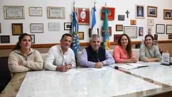 El intendente Guillermo Britos firmó un convenio con Daniel Menéndez Subsecretario de Economía Popular del Ministerio de Desarrollo de la provincia de Buenos Aires. Se trata de un programa de capacitación para fortalecer emprendimientos y unidades productivas.